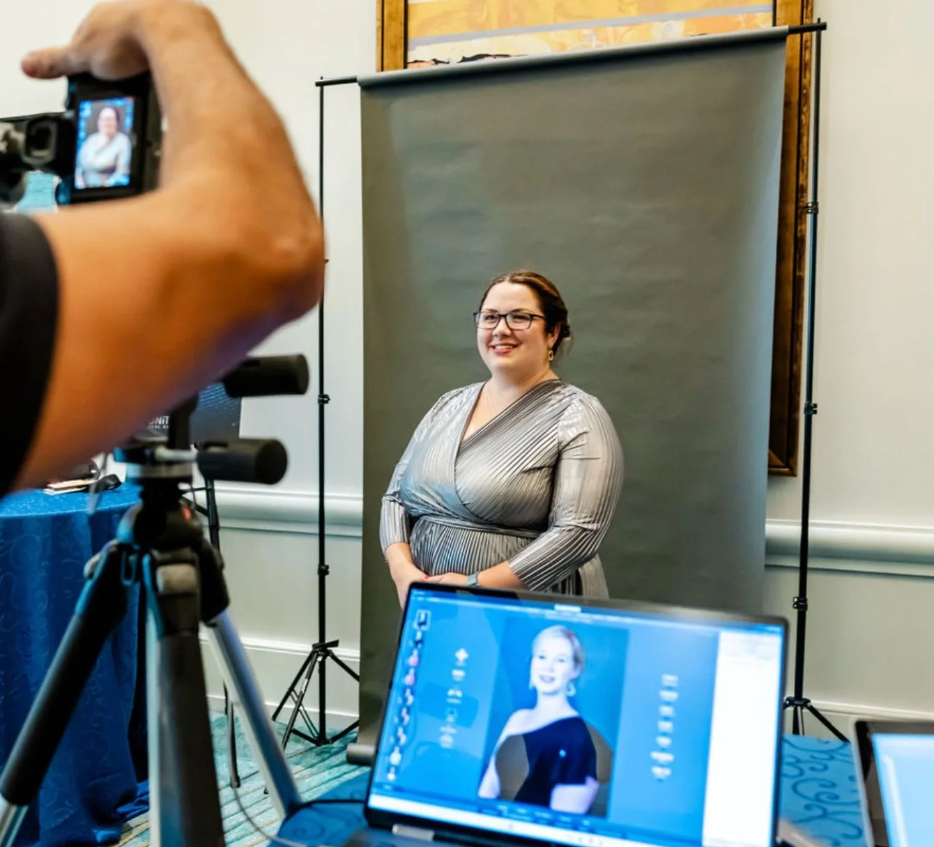 For larger teams, we streamline the workflow to minimize disruption to your workday. Employees step in, receive quick posing guidance, and return to work within minutes.